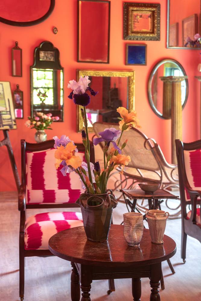 Not that it isn’t exciting. Dash’s infectious personality awaits round every turn: in the rooms of the house, with his vivid paintings hanging on vivid walls; in the exquisitely selected collection of furnishings, among them the most spectacular Thonet rocker you’ll ever see; and perhaps above all in his garden, with its Japanese-style bridge, knot garden, and grove of gingko trees. These and other features and follies, seem to have arrived from another time and place, through the wormhole of an unbridled imagination.
