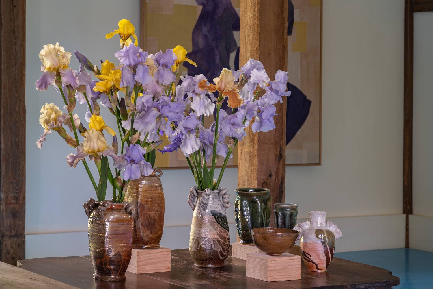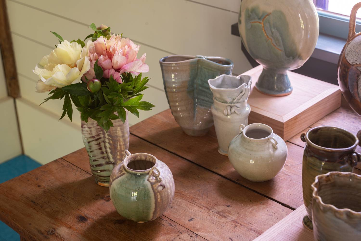 Two artists now enter this charmed circle of association: Megumi Shauna Arai and Frances Palmer. Both conducted site visits earlier in the year to develop their aesthetic response to Madoo. Palmer, herself a gardener of great skill, contributes wood-fired ceramics that provide intelligent counterpoint to the house’s vibrant palette. Palmer’s pottery is distinguished for its wide range of glazes; she has a signature touch, more than a signature look.